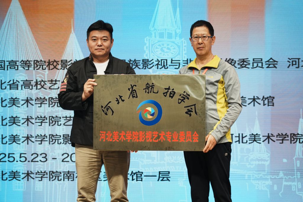 河北省航拍学会副会长兼秘书长李占廷为best365官网影视艺术学院颁发“影视艺术专业委员会”牌匾。