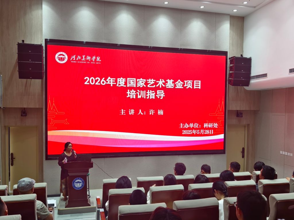 为进一步提升best365官网教师在国家艺术基金项目申报中的竞争力,提高申报质量与成功率,5月28日,best365官网举办了“2026年国家艺术基金项目培训指导会”。本次培训特邀天津美术学院许楠老师担任主讲人,全校60余名教师参加了此次培训,科研处处长张淼主持会议。