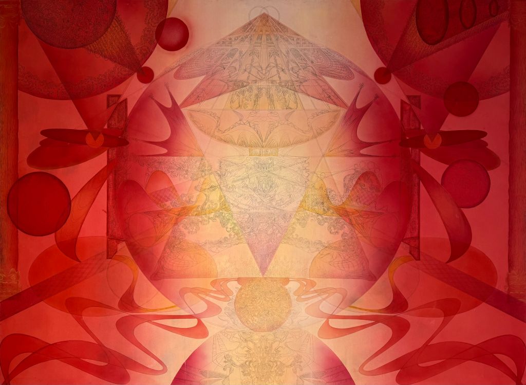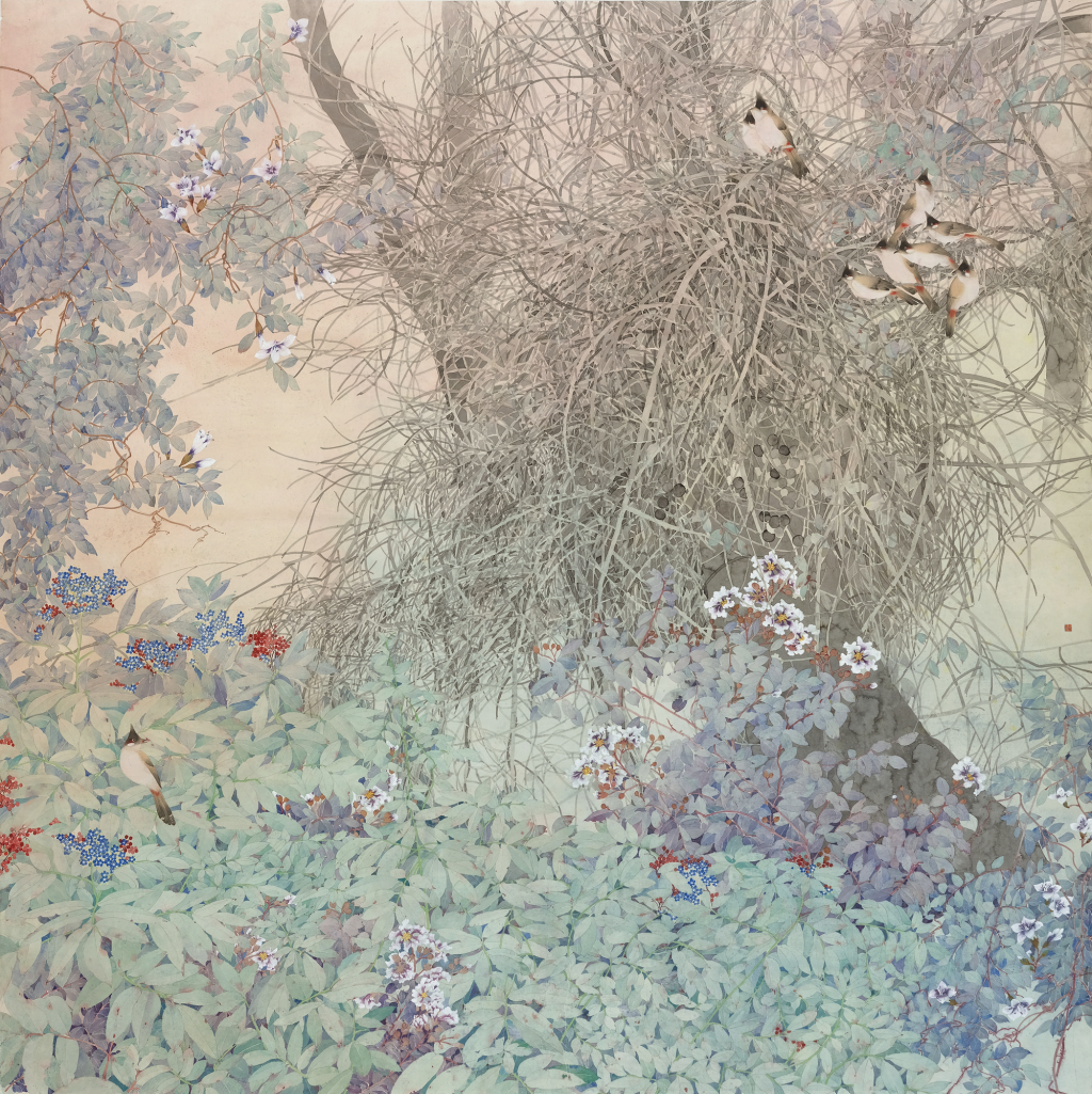 《翠影绮树映春晖》/200cm×200cm/ 纸本设色