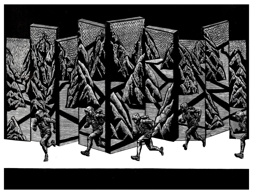 《见山》/ 90cm ×120cm/ 黑白木刻版画