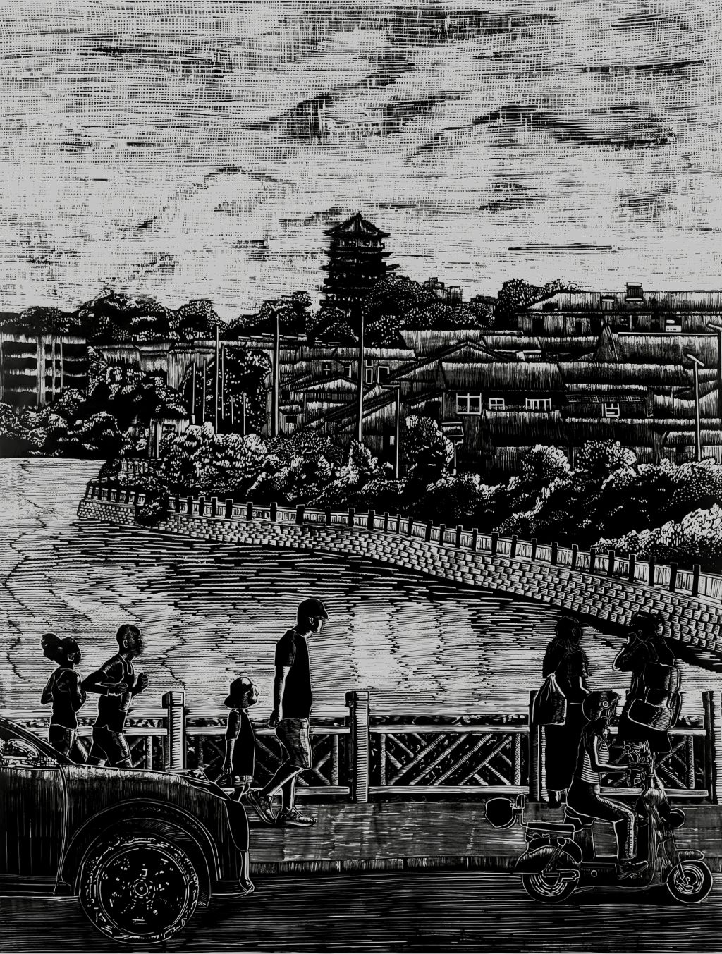 《岁月里温柔角落》/ 120cm ×90cm/ 黑白木刻版画