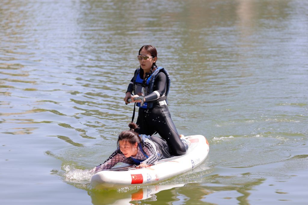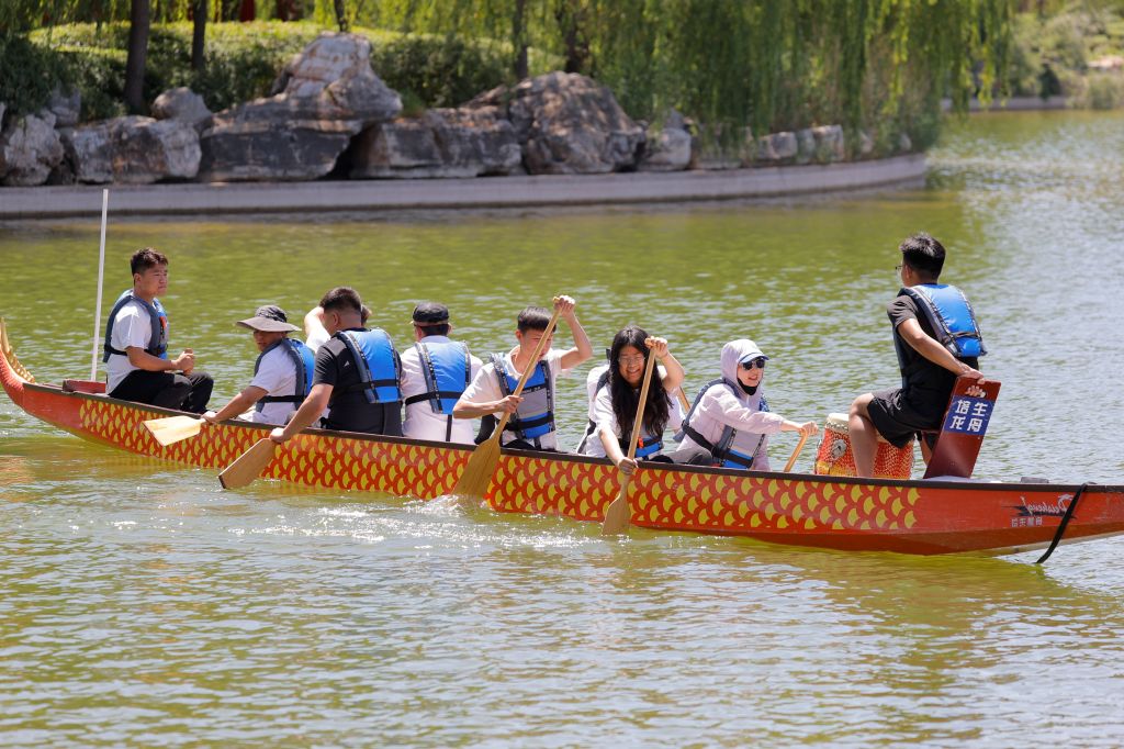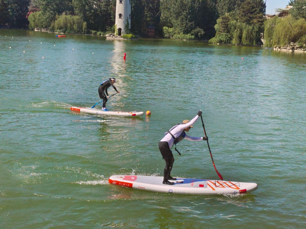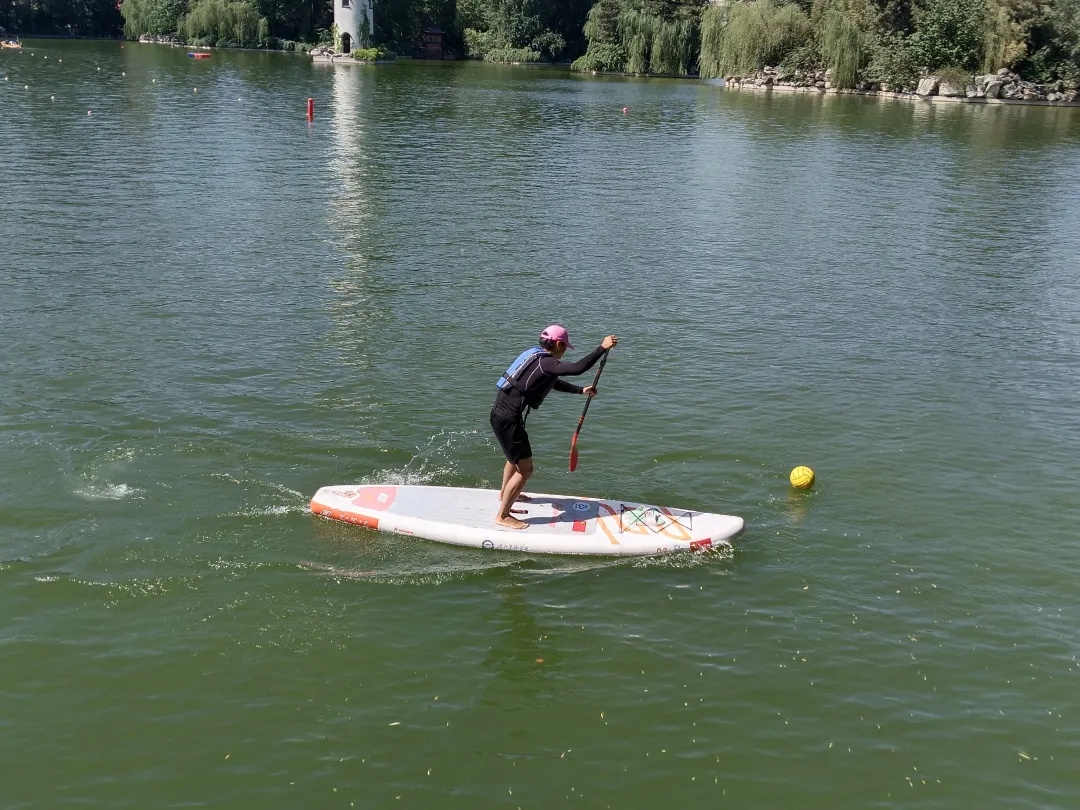 发令枪响,比赛正式开始。赛场上,热闹非凡,激情四溢。龙舟拔河项目中,教职工们齐心协力,紧握绳索,奋力拼搏;桨板救援与桨板绕标接力考验着教职工的水上技巧与团队协作能力,他们在水面上灵活操控桨板,快速穿梭,为观众带来一场场精彩的水上视觉盛宴;一分钟集体跳绳项目里,绳子飞快转动,教职工们默契配合,展现出灵动与活力;旱地龙舟、陆地冰壶、3V3篮球赛、拔河、健步走等多人竞技项目同样精彩纷呈,教职工们在赛场上挥洒汗水,尽情享受团队协作带来的快乐。