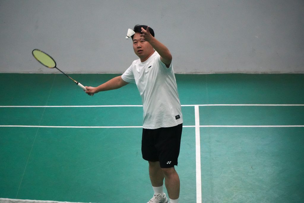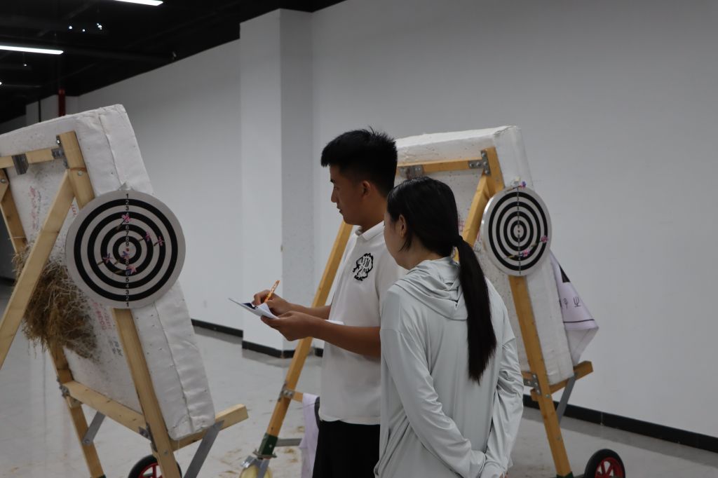 此外,划船机前,教职工们全力以赴,挑战体能极限;皮划艇物资转运中,他们精准操控,展现水上运输的高超技艺;射艺和飞镖区域,教职工们专注瞄准,一展精准的射击技巧;方砖漫步、袋鼠跳等趣味项目则让教职工们在欢声笑语中释放压力;羽毛球赛场上,教职工们挥拍击球,灵活移动,展现出敏捷的身手和顽强的斗志。这些丰富多样的比赛项目,不仅考验着教职工的体能和技巧,更激发了他们的参与热情,让整个运动会充满了活力与激情。