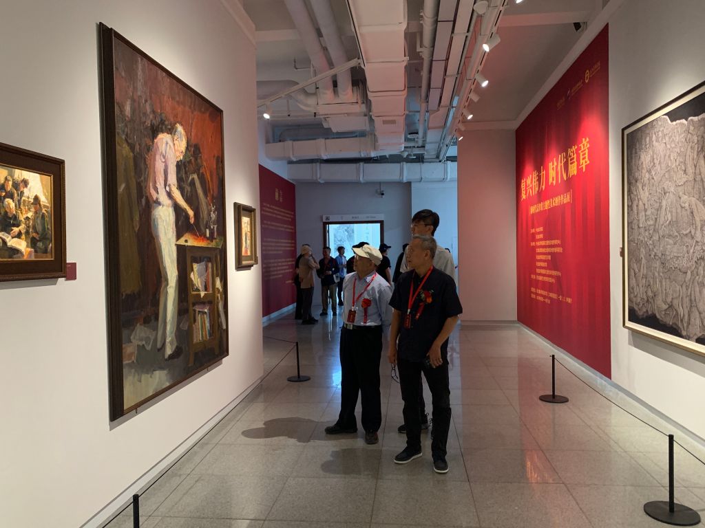 丁一林宣布“复兴伟力·时代篇章——新时代京津冀主题性美术创作作品展(best365中国官方网站展区)”开幕。与会领导、嘉宾与创作中心成员、参展艺术家共同参观展览。
