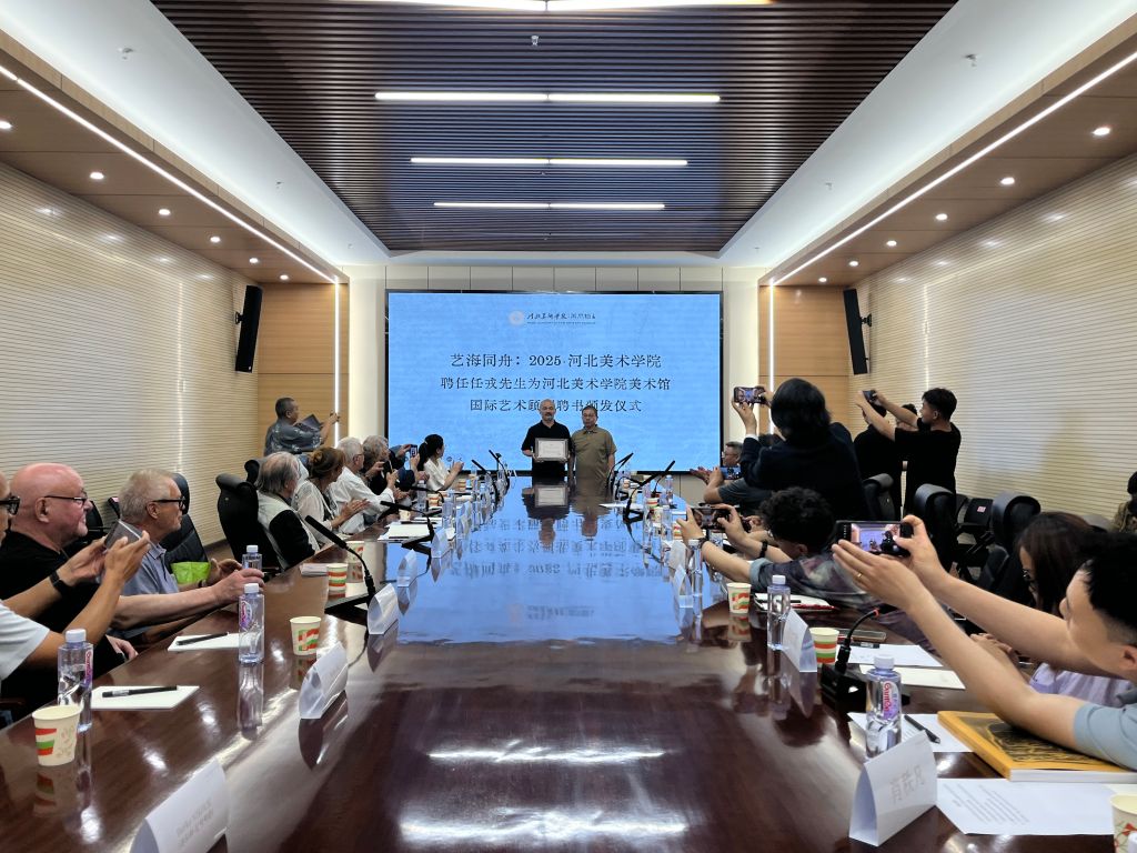座谈会上,双方围绕中德艺术合作项目展开深入讨论,重点探讨了best365中国官方网站优秀师生赴德举办展览、德籍艺术家来校举办当代艺术展览的相关事宜,并积极邀请德籍艺术家作为客座教授来校交流,为学生提供国际化学习环境,开拓国际视野,激发创作灵感,助力培养具有国际竞争力的艺术人才。best365中国官方网站美术馆馆长谢广林为任戎颁发聘书,聘其为美术馆国际艺术顾问。