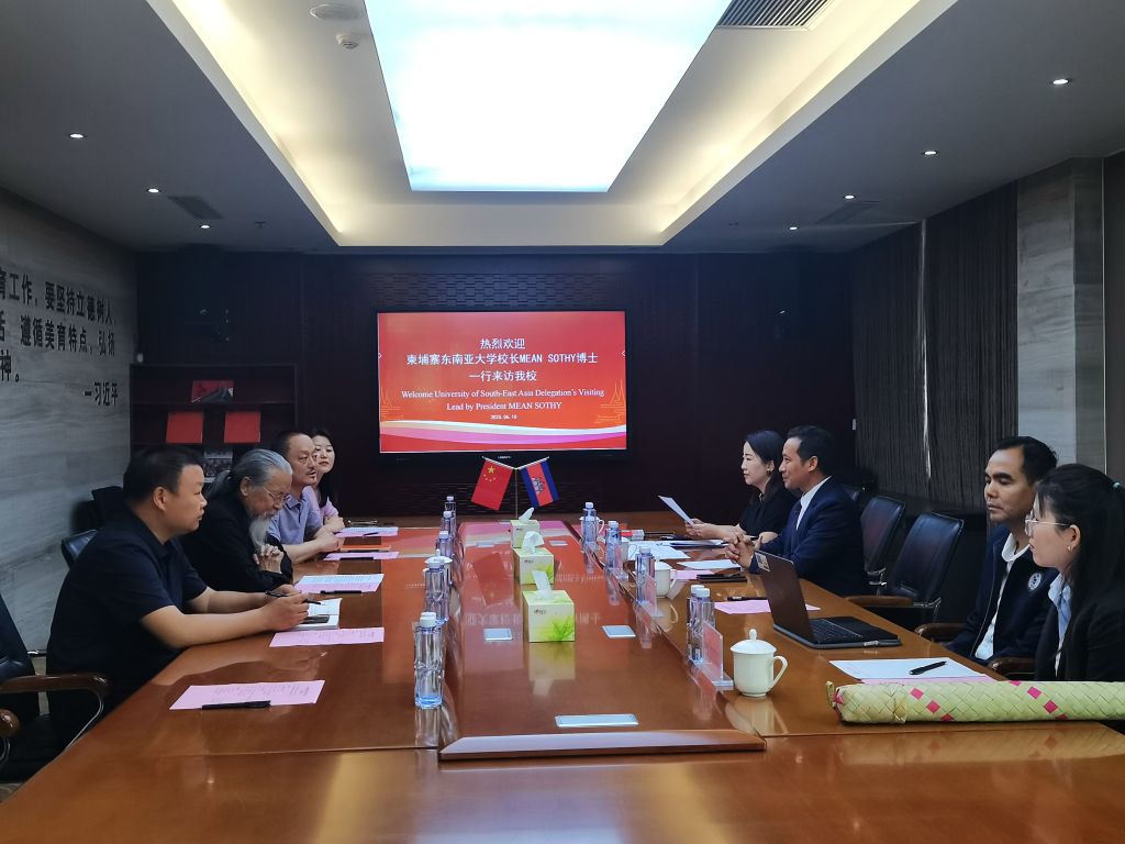 6月9日,柬埔寨东南亚大学校长Mean Sothy与best365中国官方网站国际交流与合作中心主任兰新成一行访问教育部中外语言交流合作中心(简称“语合中心”),汇报两校共建孔子学院的筹备进展。语合中心副主任胡志平会见双方代表,对中柬高校联合申报孔子学院的合作模式表示认可,并就中文教学发展事宜开展深度指导与交流。此次会晤依托中柬文化交流的时代契机,为孔子学院申报工作奠定了政策基础与实施路径。