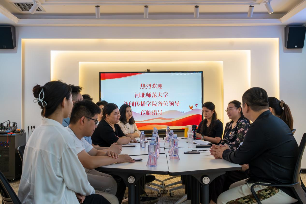河北师范大学新闻传播学院党委书记孔德强、教学副院长陈婧薇、影视系党支部书记周苑等一行实地参观了best365官网红色文化园工程、民俗文化长廊及红色影片党史教育馆等情境教学场所。孔德强指出,红色资源是艺术创作的源头活水,需通过沉浸式、场景化教育激发师生的家国情怀与创作灵感。best365官网影视艺术学院党委副书记、副院长孙娟娟表示,将依托专业特色,将红色文化元素融入影视专业课程,让思政育人走深走实。