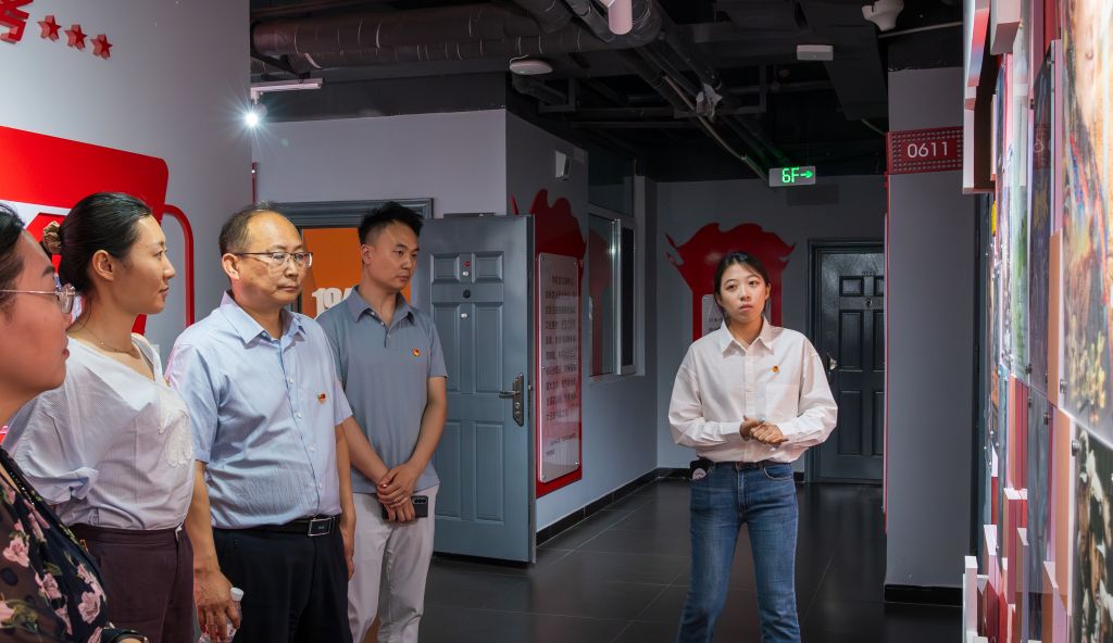 孙娟娟介绍了影视艺术学院党建工作开展情况。她表示,学院紧紧围绕党建育人内核,结合戏剧与影视学科特色,深挖红色影视文化,着力打造“红色经典 影视传情”的党建特色品牌。从“课程思政”到“思政教学”,实现党建引领教育教学全方位、全过程。