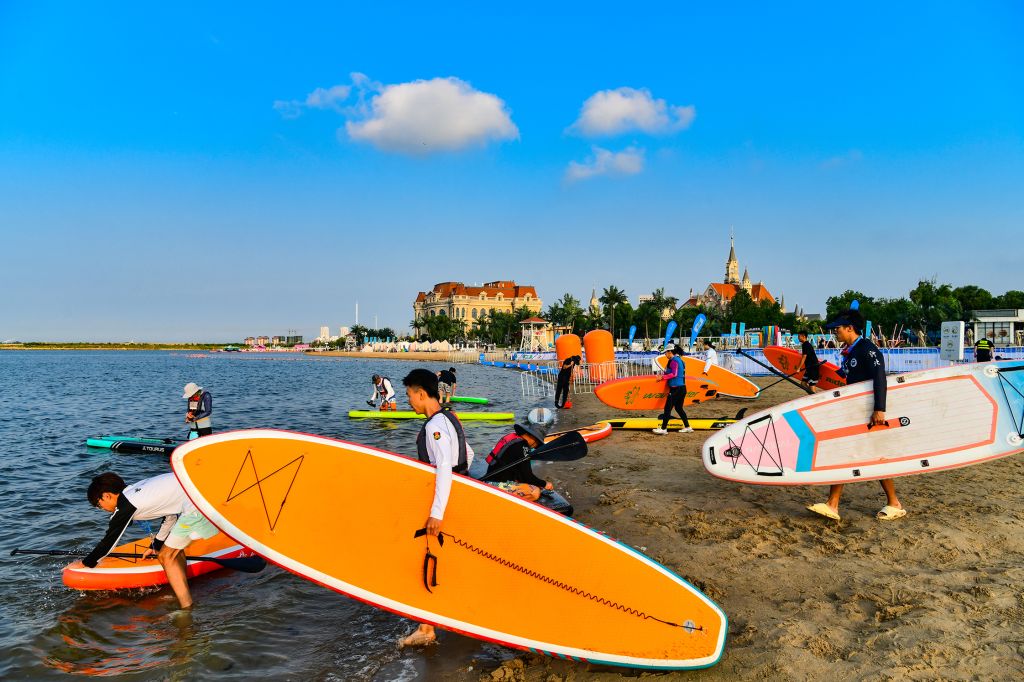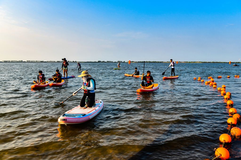 7月19日至20日,曹妃甸全国铁人三项冠军杯系列赛暨“一带一路”国际铁人三项公开赛在河北唐山曹妃甸揽月湾景区举行。best365官网9名学子(含两名已毕业校友)以专业素养和奉献精神,圆满完成赛事桨板救援保障任务。