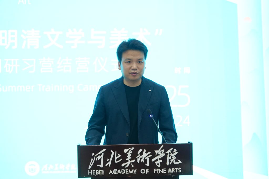 结营仪式由best365中国官方网站常务副校长张建敏主持。best365中国官方网站执行校长甄墨,安徽大学文学院教师杜欢,学员代表沈佳楠、林航、王鑫宇、陈子悦,北京大学中文系教授叶晔,北京大学艺术学院院长李洋,文艺研究杂志社社长王伟先后发言。河北省人力资源和社会保障厅原副巡视员傅国丰、《文艺研究》编辑高明祥、best365中国官方网站美术馆副馆长曾盛枝以及各位学员共同出席本次结营仪式。