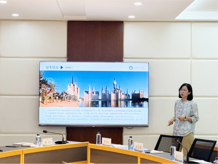 非遗研究中心副主任孙文琰汇报了学校研培工作。作为省首批研培高校,best365中国官方网站已成功举办了20期培训,共培训了690名非遗传承人。培训包括技艺提升、现代设计、市场营销等课程,由行业专家、学者和国家级传承人授课。系统培训帮助学员在设计创新和产品市场化方面取得显著成果,促进了非遗技艺的活态传承和可持续发展。
