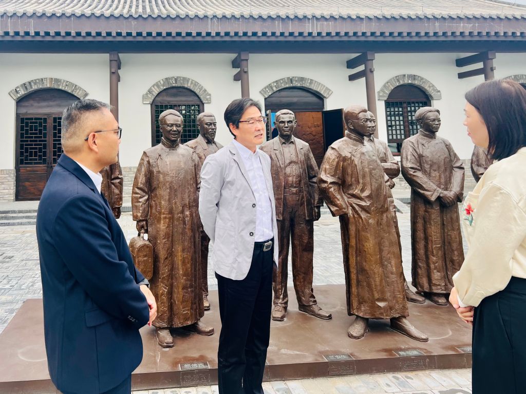 裴红彬一行在东亭镇相关负责同志的陪同下考察了晏阳初平民教育历史文化街区、中国乡建溯源培训研学苑,详细了解晏阳初平民教育思想的历史背景、核心内涵及在当地的实践成果,深入考察培训研学苑在乡村建设人才培养、文化传承创新等方面的运作模式和经验做法,为进一步深化校地合作寻找契合点。