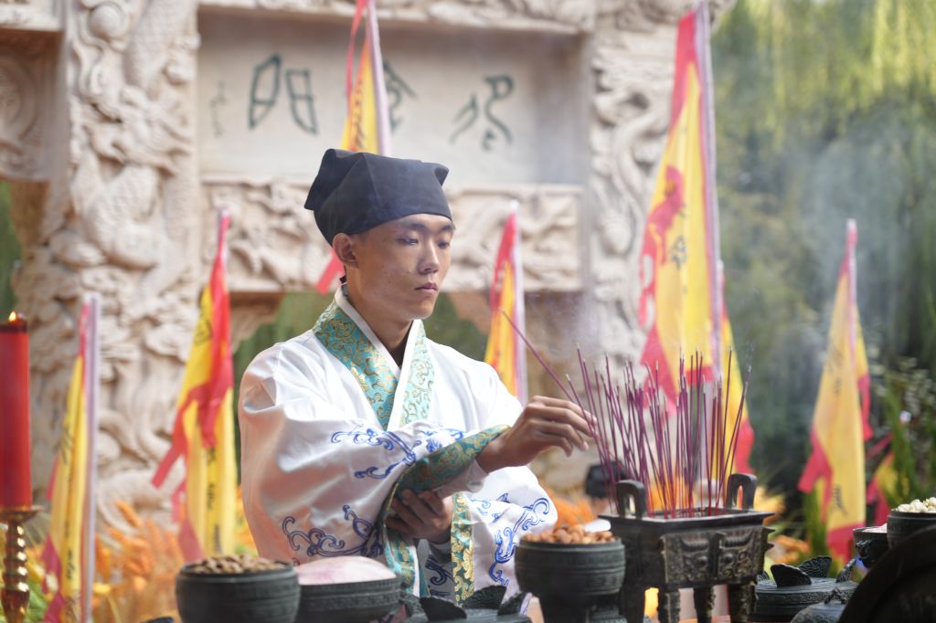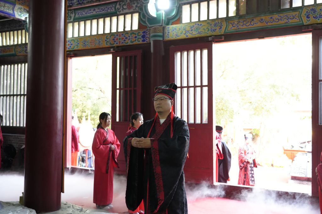 上午8时,鼓声鸣响,众学子执羽籥而舞八佾,齐声诵唱《论语》,肃穆的舞步与朗朗书声汇成对先贤的千年致意。