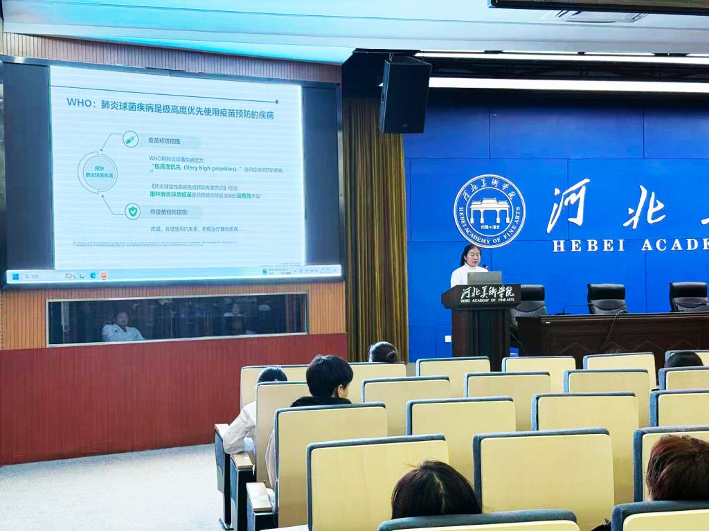 在讲座环节,新乐市中心医院主管护师刘旭首先对疫苗接种知识进行了系统科普。她详细讲解了疫苗的作用原理、常见疫苗的种类以及接种的必要性,并特别针对大学生群体,强调了流感疫苗、HPV疫苗等的重要性。此外,她还对本市最新的疫苗接种政策进行了解读,就师生们普遍关心的接种程序、注意事项、禁忌症等问题进行了清晰说明。