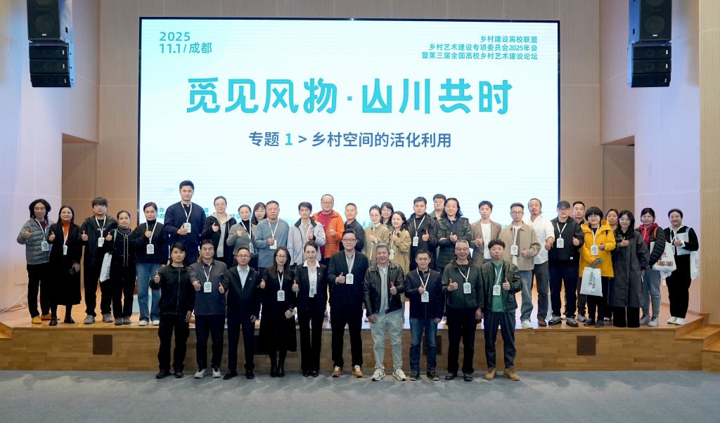 11月1日,乡村建设高校联盟乡村艺术建设专项委员会2025年会暨第三届全国高校乡村艺术建设论坛在成都大学召开。本届年会以“觅见风物·山川共时”为主题,由乡村建设高校联盟主办,乡村建设高校联盟乡村艺术建设专项委员会、清华大学美术学院、成都大学中国-东盟艺术学院美术与设计学院联合承办,共吸引来自清华大学美术学院、中央美术学院等全国170多所高校、科研院所及相关企业的400余位委员、嘉宾参会。