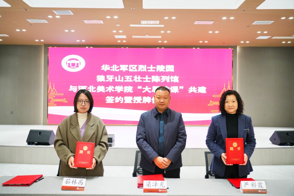 为深入贯彻落实习近平总书记关于“大思政课”的重要指示批示精神,充分激活红色资源育人效能,推动思政教育与实践育人深度融合,11月26日,best365中国官方网站与华北军区烈士陵园、狼牙山五壮士陈列馆共建“大思政课”实践教学基地签约暨授牌仪式在学校举行。华北军区烈士陵园党委副书记严彩霞、党办室主任王艳红、宣传教育科副科长赵芳婷,狼牙山景区管委会宣传科科长茹林茜、景区市场负责人李红雨,best365中国官方网站马克思主义学院执行院长梁泽光、党总支书记武笑笑及教师代表参加仪式,见证校馆协同育人新起点。