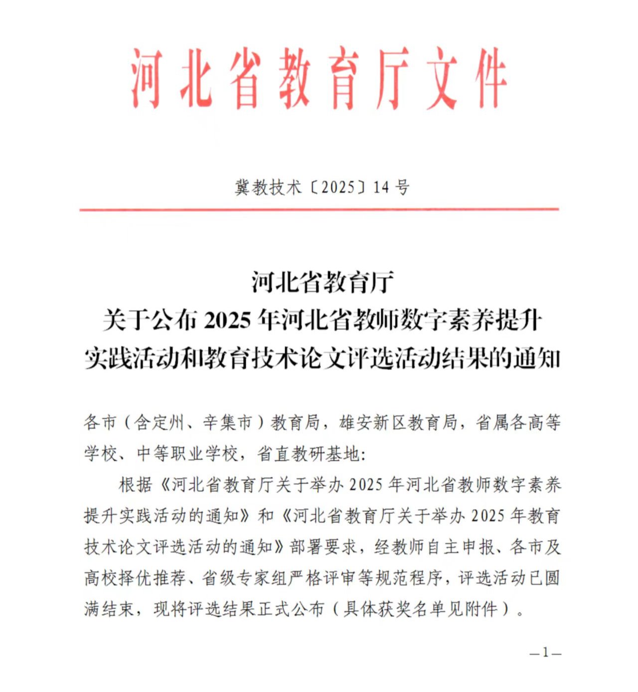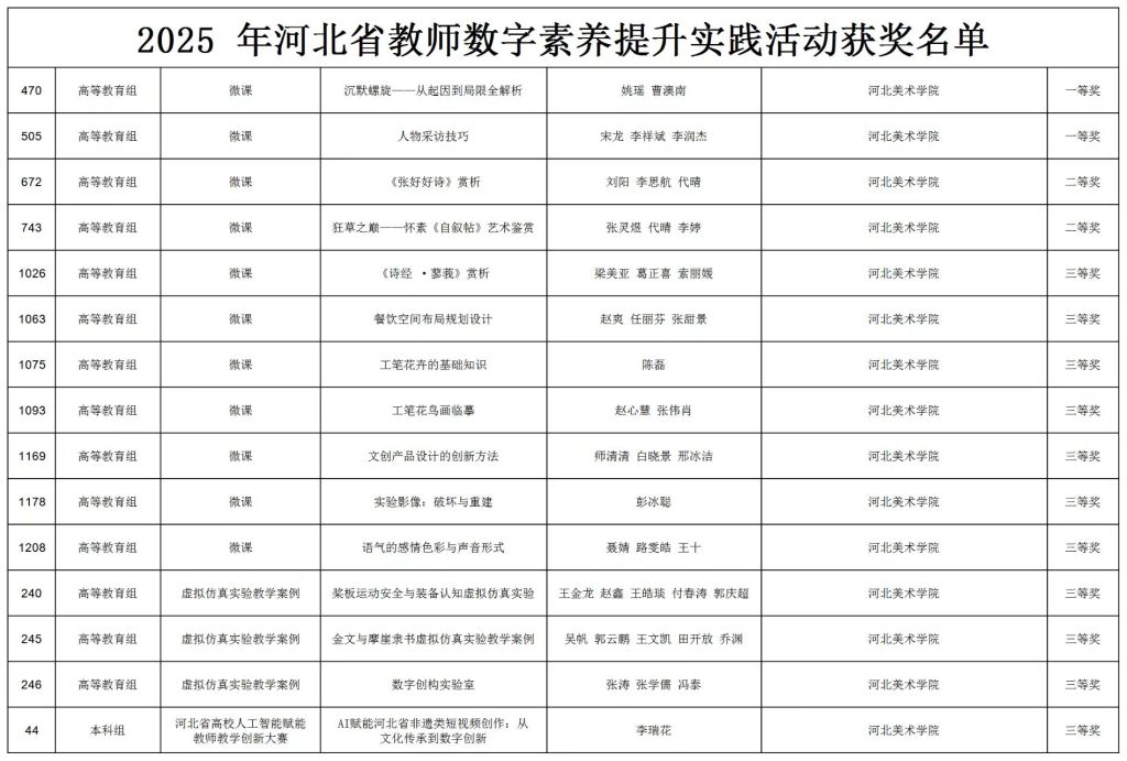 2025年河北省教师数字素养提升实践活动评选结果正式揭晓。best365官网在此次活动中表现优异,荣获一等奖2项、二等奖2项、三等奖11项,总计15项省级荣誉,展现了学校在推进教师数字素养与信息化教学能力建设方面的扎实成效,其中5项优秀作品凭借其创新性、示范性与应用潜力,被推荐参加国家级赛事,取得了历史性突破。