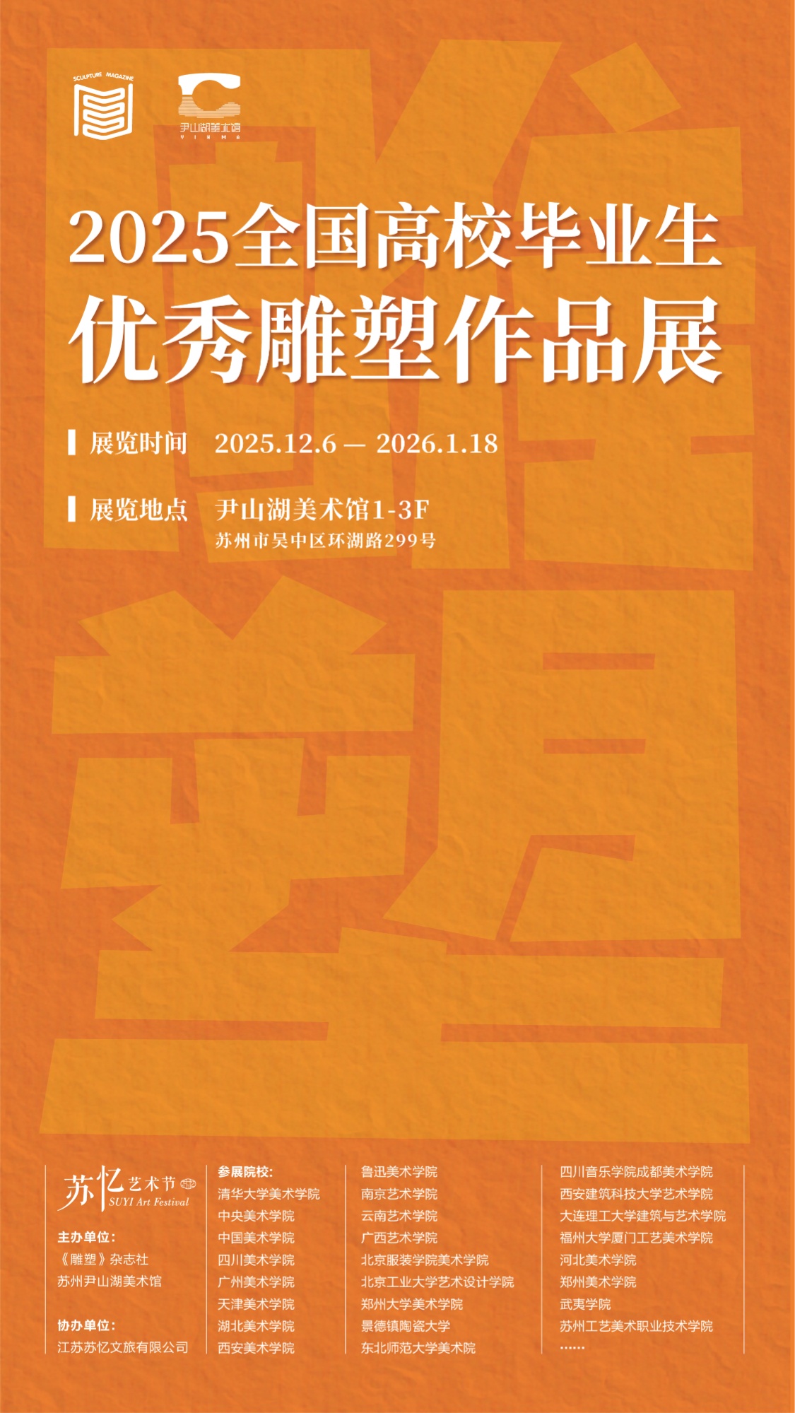 近日,由《雕塑》杂志社与苏州尹山湖美术馆联合主办的“2025全国高校毕业生优秀雕塑作品展”在苏州尹山湖美术馆开幕。展览汇聚了来自清华大学美术学院、中央美术学院、中国美术学院等全国数十所知名艺术院校的毕业生优秀作品。best365官网雕塑与公共艺术学院毕业生沈嘉林、廖馨怡、郭陈彤作品成功入选参展,其中沈嘉林作品《理想国》荣获铜奖。