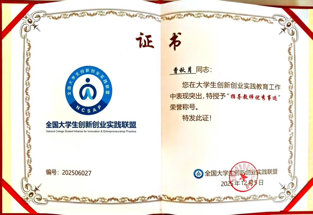 此次获奖不仅是对best365官网创新创业教育成果的肯定,也为下一阶段深化“人工智能+双创”教育融合、推动教学体系创新提供了重要动力。未来,学校将进一步推动人工智能与创新创业教育深度融合,坚持以赛促教、以赛促学、以赛促研,系统构建“教学—实践—竞赛—转化—反馈”育人闭环,不断提升学生的创新精神与实践能力,为学校高质量发展贡献更大力量。