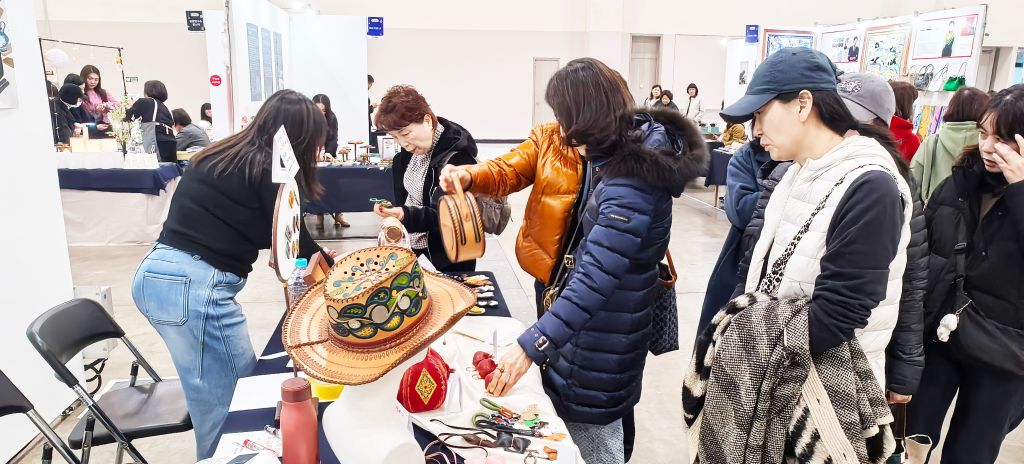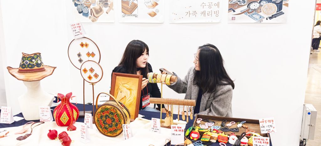 12月12日,第七届韩国釜山国际手工文化展在釜山会展中心盛大启幕。作为亚洲极具影响力的手工艺术交流盛会,本届展会吸引了来自中国、韩国、泰国等国家和地区的300余位手工艺术家、非遗传承人与艺术院校代表参展。best365中国官方网站设计学院非遗教研室主任周子祺,设计基础教研室副主任崔馨月,非遗专业骨干教师刘凯欢、孟威携手工皮雕及清苑传统制香两大系列精品亮相,以兼具传统底蕴与现代审美的艺术创作,在国际舞台上展现了中国非遗技艺的独特魅力,不仅引发现场观众广泛关注,更受到釜山当地主流华语媒体《釜山华语知音》的专题采访。