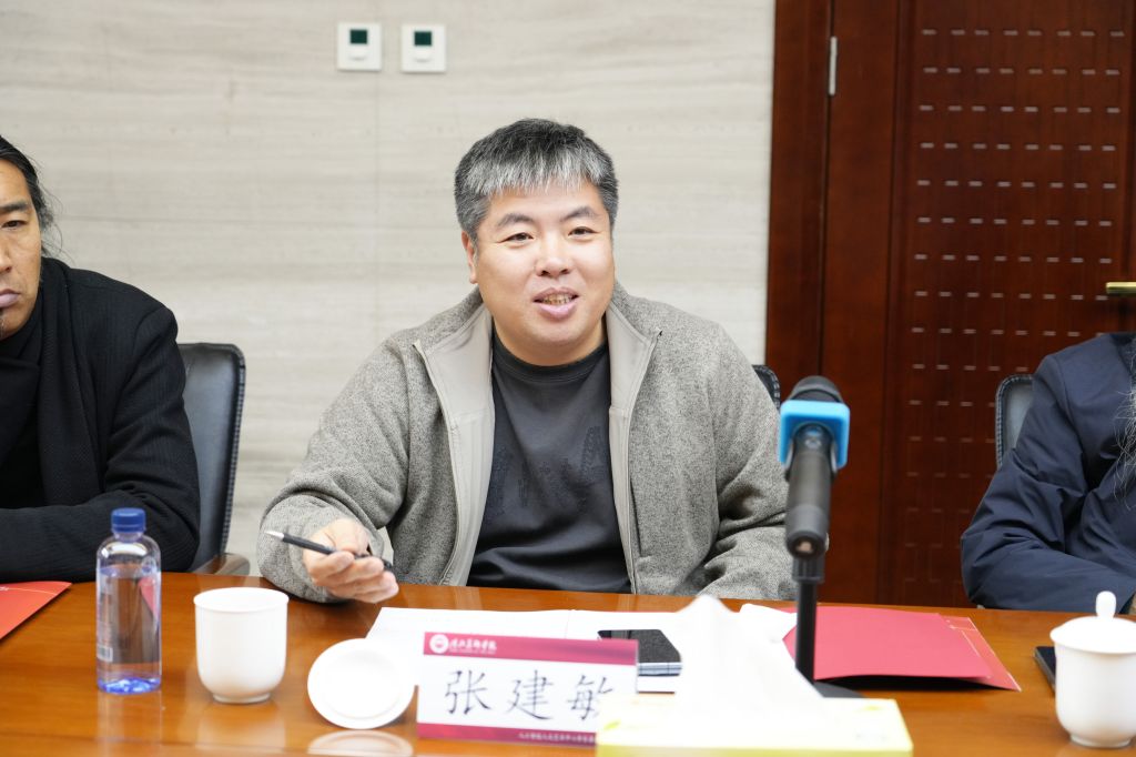 三位二级学院领导代表发言。董小龙聚焦古建筑数字化保护与文旅融合开展合作;造型艺术学院院长姜兴达侧重壁画数字修复与原创力培养;姜仁峰致力于突破西方美学倾向、打造东方美学AI作品。三位均期望依托四方合作推动AI与各自学科领域的深度融合与创新发展,围绕技术研发与人才培养,希望深化与顶尖院校的技术合作,共享优质教学资源,培养复合型智能艺术人才。