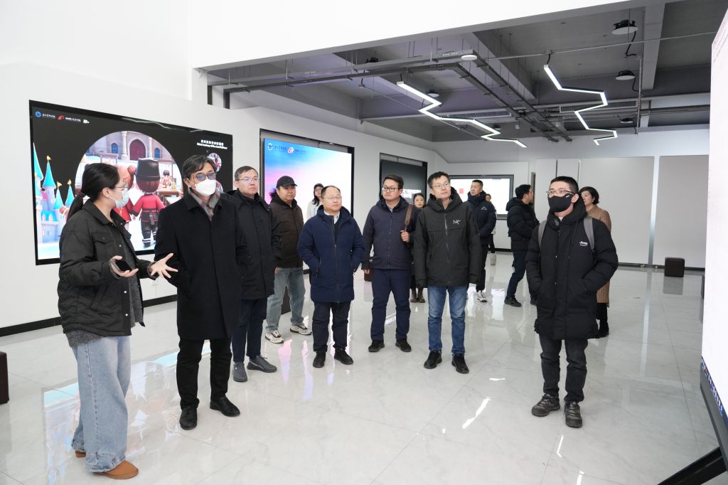 上午,在执行校长甄墨等陪同下,参会专家学者前往设计学院、未来智能艺术学院,实地考察学校基于艺术与科技、数字媒体艺术等国家一流本科专业共建的人工智能艺术实验室集群。设计学院院长董小龙、未来智能艺术学院院长姜仁峰分别围绕实验室的核心定位、硬件配置、合作研发、科研成果及产学研转化等方面进行详细讲解。专家们对学校在“人工智能+艺术”领域取得的成果给予高度认可。
