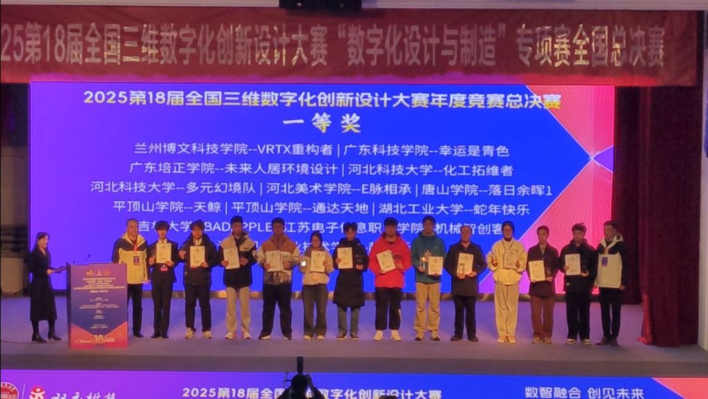 全国三维数字化创新设计大赛(简称“3D大赛”)是教育部《全国普通高校大学生竞赛排行榜》中的重要赛事,也是国家在实施创新驱动发展战略、推动实体经济和数字经济深度融合背景下开展的一项大型公益赛事。大赛紧密结合科技进步与产业升级需求,已成为数字经济时代产教融合与创新型人才培养的重要平台。