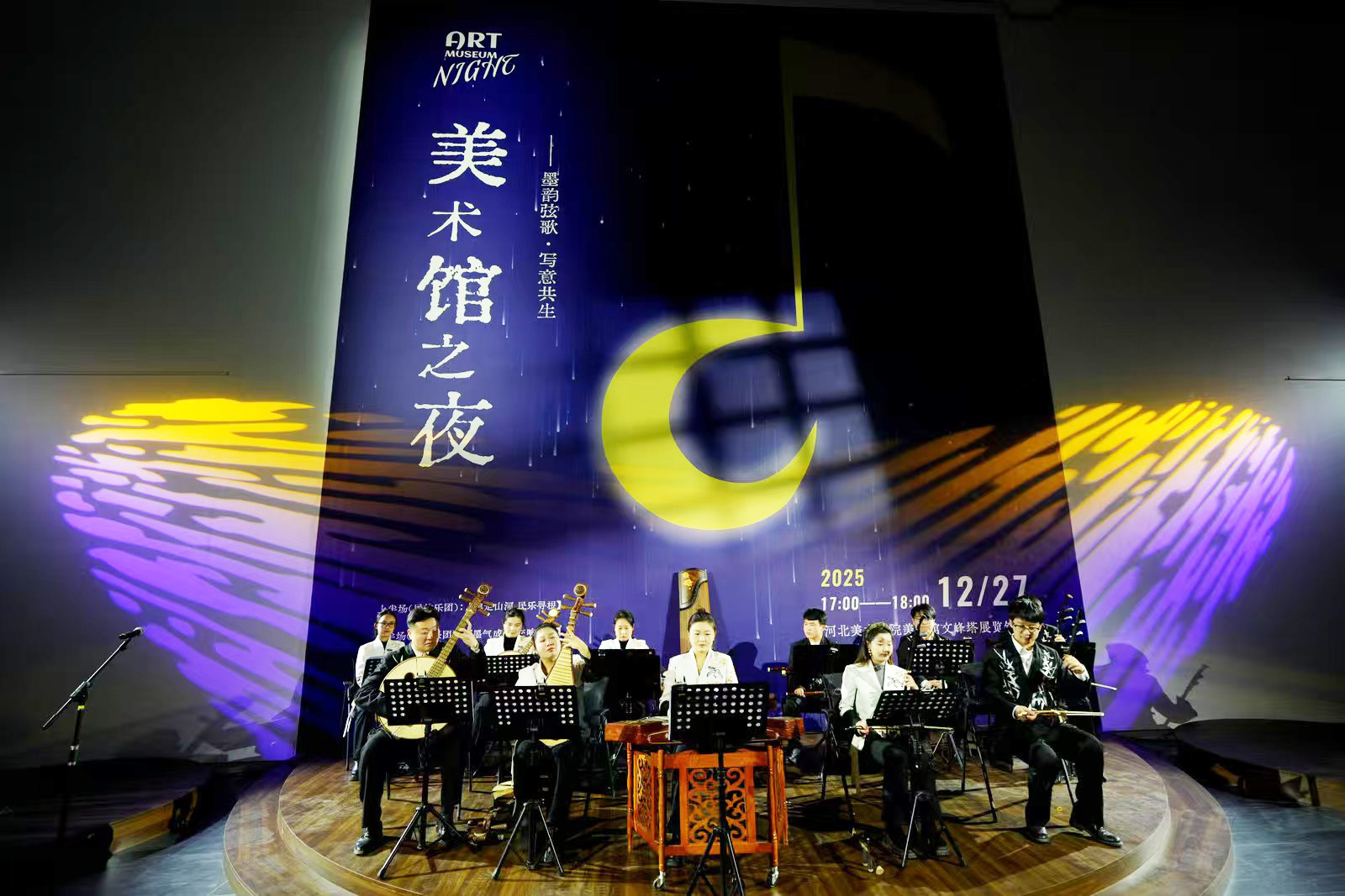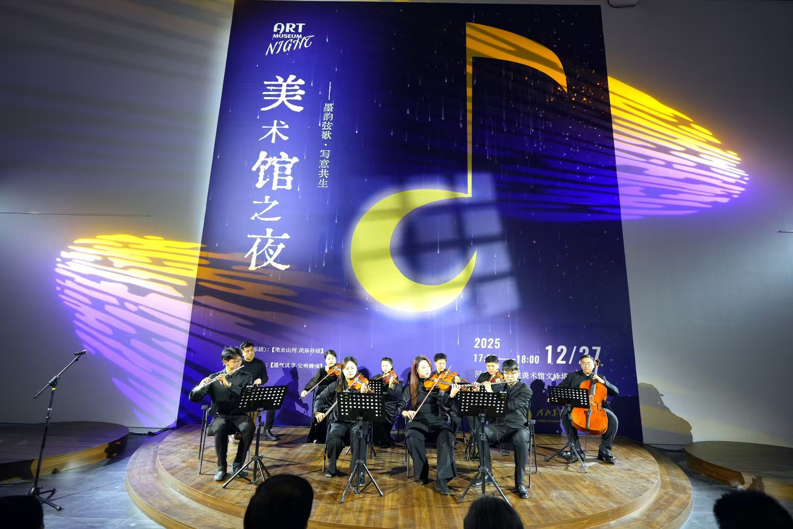 12月27日17:00,“美术馆之夜·墨韵弦歌·写意共生”系列公共教育活动第二场音乐会在best365官网美术馆文峰塔展馆举行。活动以音乐对话绘画,打破感官边界,为现场观众呈现了一场“音画共生”的沉浸式美学体验。