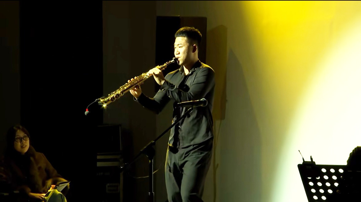 下半场“交响铸魂·墨气成章”,对应展览第二篇章“写何者之意?”与第三篇章“何以写意?”。从《卡农》声部交织的复调结构,到《蓝色多瑙河圆舞曲》如流水般的华尔兹节奏;从《今夜感觉我的爱》的深情倾诉,到《在水一方》的朦胧诗意,再到《匈牙利舞曲》的蓬勃张力,音乐在层层推进中展现出多元而丰富的审美维度。随后,萨克斯独奏《美丽的神话》奏响,金属音色的光泽浸润水墨般的氤氲,与“笔不周而意周”的东方写意精神形成耐人寻味的艺术对话。演奏结束后,主持人对音乐与绘画的深层共鸣进行总结升华,点题“写意共生”的核心内涵。