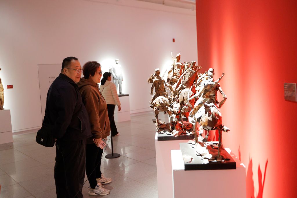 “首届青年雕塑作品展览”集中展示了全国青年艺术家的雕塑创作成果,将青年雕塑创作者的艺术力量与传统文化的创新表达推向全国观众。展览期间,学校面向公众免费开放预约,累计吸引参观人次超85万,并获得主流媒体广泛关注。此次展览创下中国美协专项展的历史参观纪录,成为艺术与文旅融合、美育与社会效益共赢的生动典范。