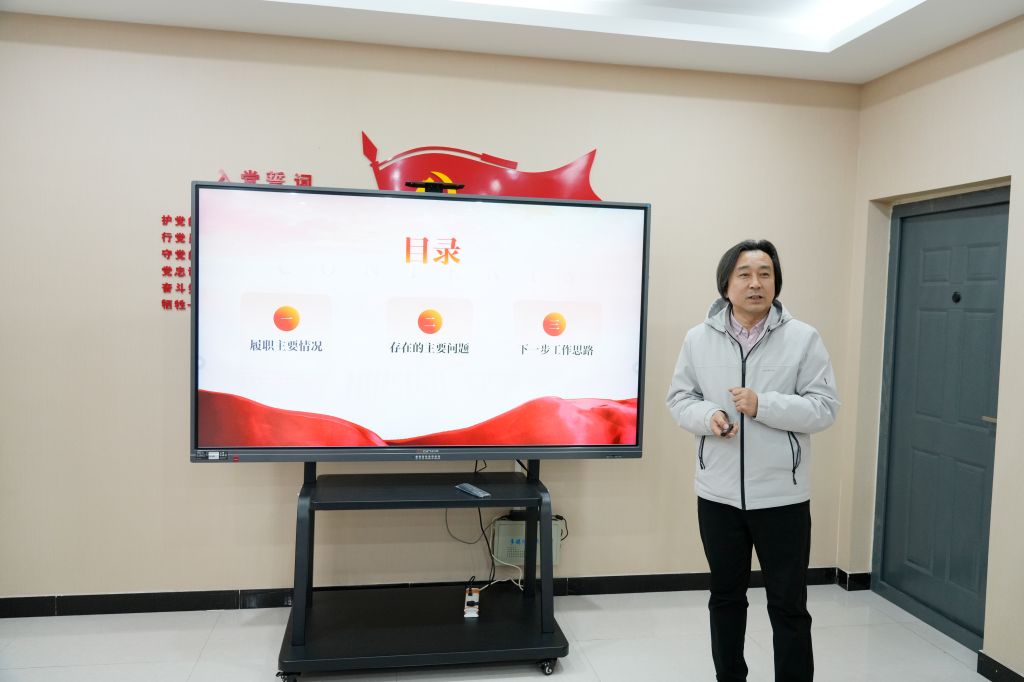 校党委书记裴红彬以“一述一评”方式逐一点评,从党建与学科业务融合、提升党建品牌辨识度、讲好党建品牌故事、推进数字化党建等方面,对各基层党组织书记在述职汇报中存在的问题,提出了建设性意见。