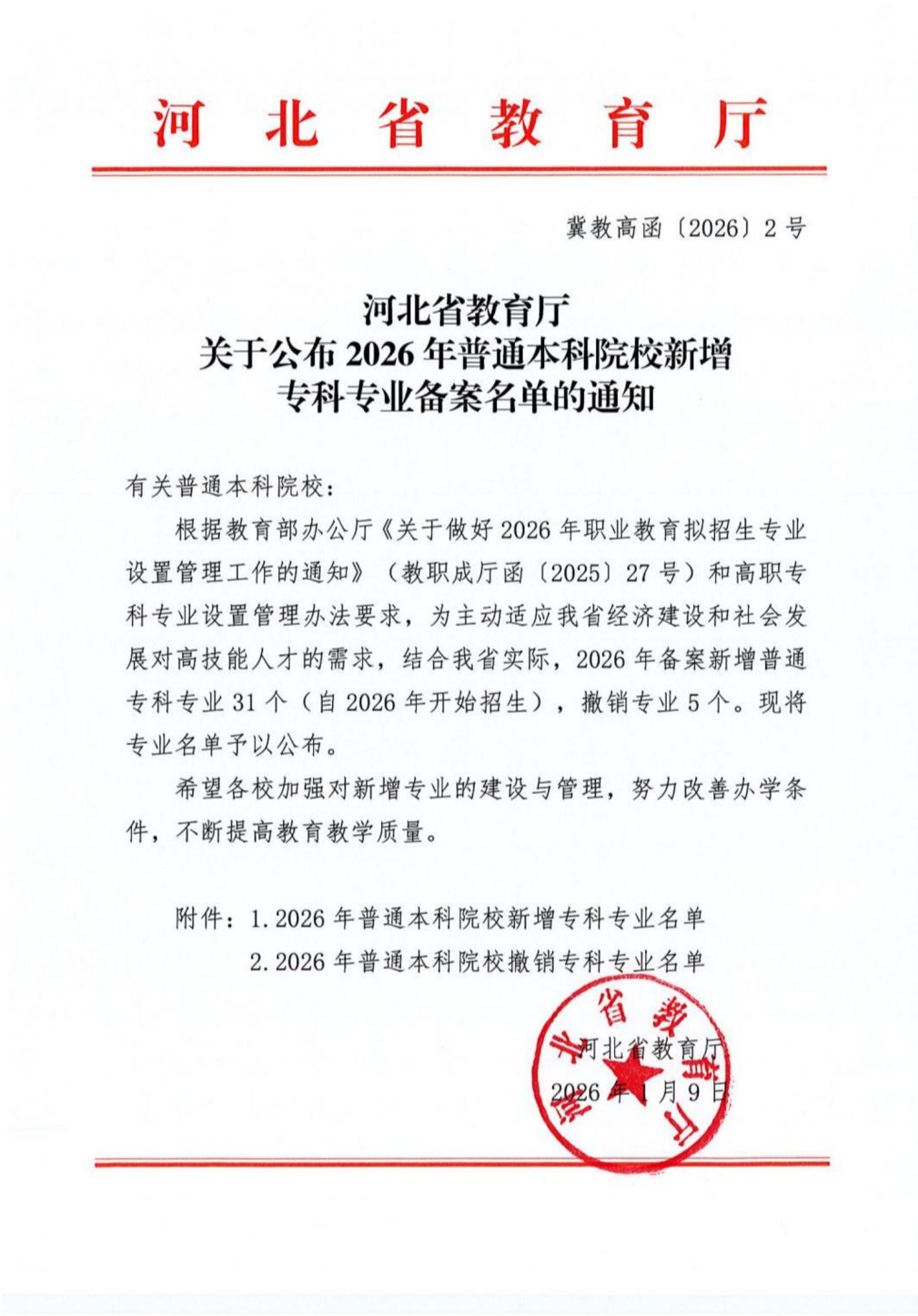 近日,河北省教育厅发布《关于公布2026年普通本科院校新增专科专业备案名单的通知》(冀教高函〔2026〕2号),其中,best365官网申报的人工智能技术应用(510209)、无人机应用技术(460609)、数字媒体技术(510204)、人工智能数据工程技术(510217)、无人机测绘技术(420307)和虚拟现实技术应用(510208)6个专科专业成功备案,将于2026年正式面向全国招生。