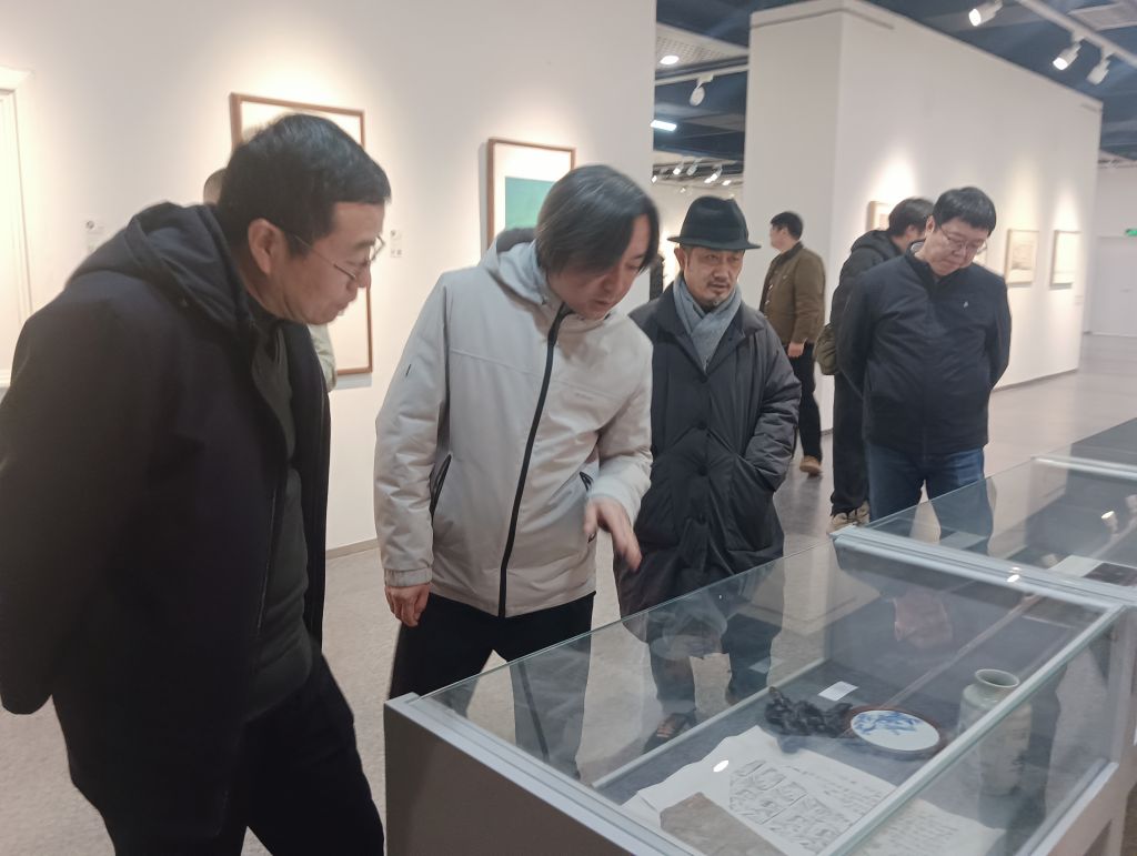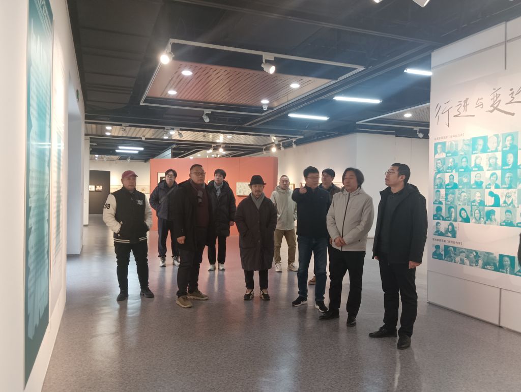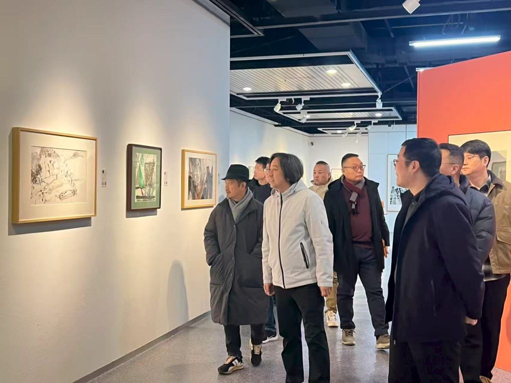 交流结束后,在学院领导的陪同下,姜兴达一行参观了美术与设计学院“行进与变迁”为主题的山水画作品展。双方教师在观展过程中进一步在艺术实践层面进行了深入探讨。