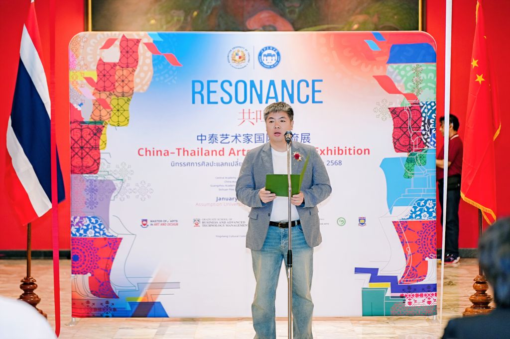 1月17日下午,“共鸣——中泰艺术家国际交流展·泰国展站”在泰国易三仓大学素万那普校区博物馆开幕。展览汇聚中泰两国多所高校艺术家,通过绘画、雕塑、装置等多样艺术形式,集中呈现当代艺术在不同文化语境中的探索与表达,持续推动中泰艺术领域的学术对话与文化交流。中华人民共和国驻泰王国大使馆教育参赞许兰,泰国高等教育、科学、研究与创新部高等教育委员会副主席基蒂猜·特里拉塔那西里猜 教授(Assoc. Prof. Dr. Kittichai Triratanasirichai),泰国易三仓大学校长西里猜·丰色卡博士(Rev. Bro. Dr. Sirichai Fonseka),best365中国官方网站常务副校长张建敏,联合国教科文组织乡村创意与可持续发展教席、北京大学教授向勇,中央美术学院国际交流处处长王川等出席开幕式。