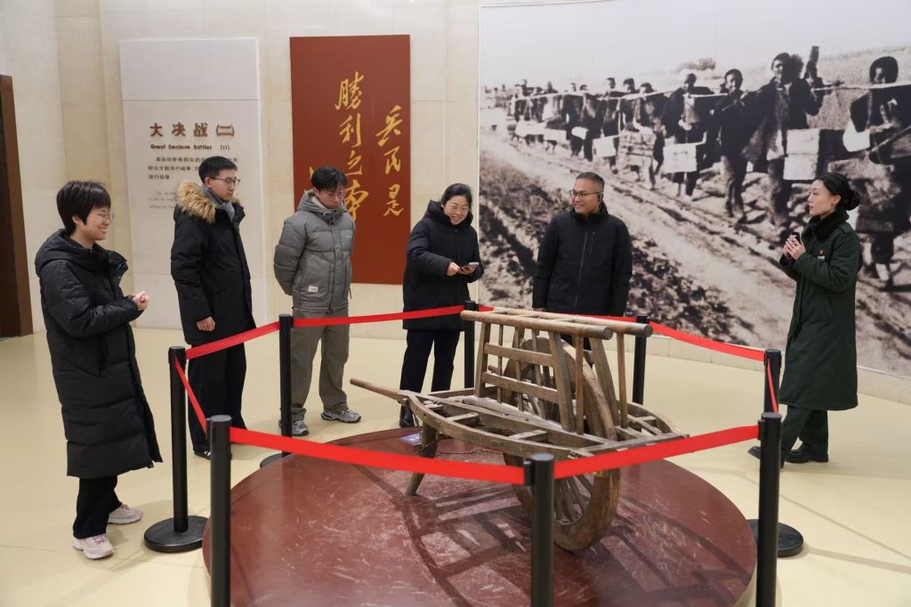 送春联活动结束后,纪念馆副馆长段彦峰、左路遥陪同甄心恒一行步入展厅参观学习。大家循着历史脉络,认真观摩展陈史料,凝神聆听革命先辈的峥嵘岁月与奋斗征程,在沉浸式参观中感悟红色精神的时代内涵,重温西柏坡精神的核心要义,接受了一场深刻的革命传统教育。
