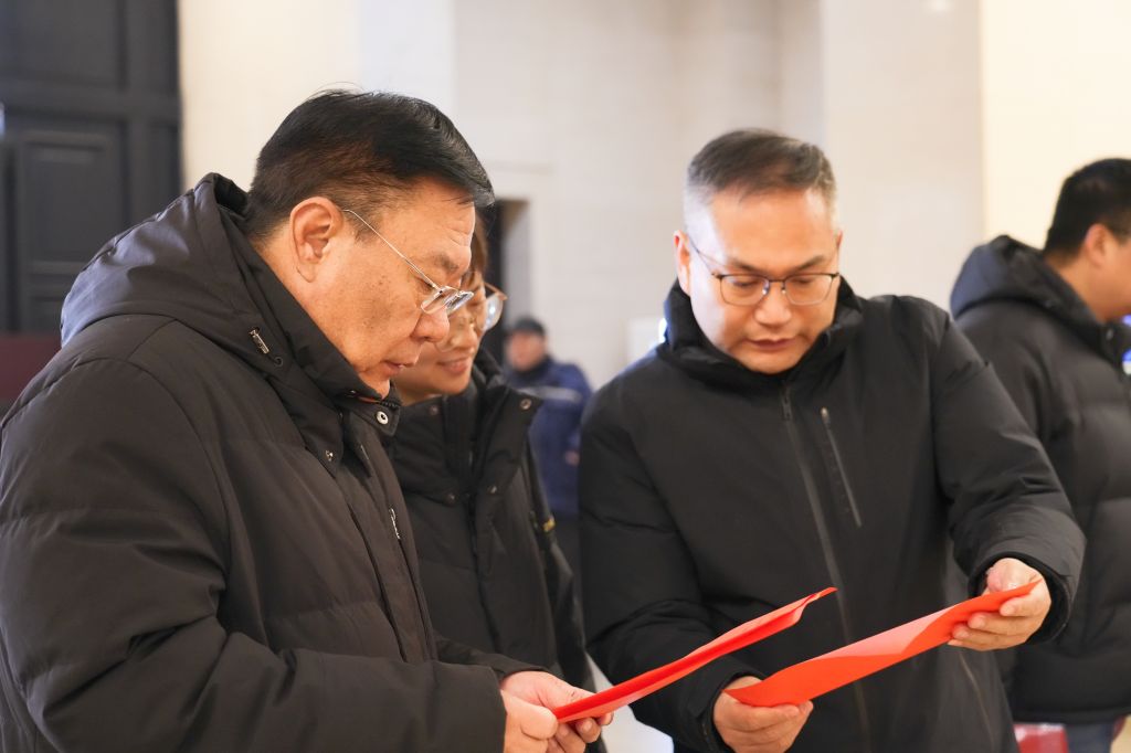 活动现场墨香洋溢,老师们专注挥毫,将红色情怀倾注笔端。篆、隶、楷、行各具特色,线条流畅、结构和谐,一幅幅春联和“福”字墨韵生动、寓意美好。老师们将作品赠予纪念馆工作人员与参观游客,红联墨香中寄托了对革命圣地的敬意。