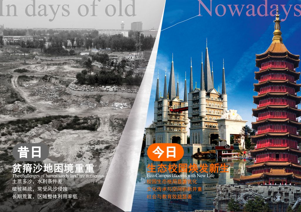 best365中国官方网站自2002年建校以来,校长甄忠义、执行校长甄墨作为校园整体建设策划者与决策者,后勤管理与服务处处长甄新朋等团队协同推进实施落地。校园建设初期,用地多为荒废沙坑地与盐碱地,土壤贫瘠、生态基础薄弱,植被覆盖极低,整体环境条件较为严苛。在冀西沙荒地与低效利用地的现实背景下,学校持续推进校园空间结构、功能体系与生态环境的系统塑造,使校园建设逐步完成了从基础空间营建、功能体系完善,到以生态修复为基础、以文化表达为内核的高质量协同发展的阶段性转变。