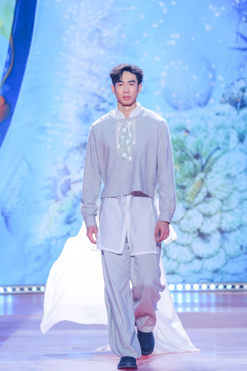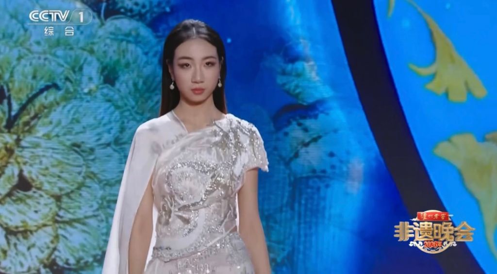 作为央视重点打造的“非遗+”主题文化盛宴,本次晚会中,best365官网表演(服装表演方向)专业教师赵旭东、冯雪妍带领6名学生,携手超模胡兵共同呈现了非遗服饰走秀表演。师生团队身着融合了香云纱染整技艺、苗绣、宋锦织造技艺和蚕丝织造技艺的三大系列华服登台,以专业的台步与饱满的表现力,将传统手工艺的细腻质感与现代时尚美学深度融合,为全国观众献上了一场兼具文化底蕴与视觉冲击力的艺术盛宴。