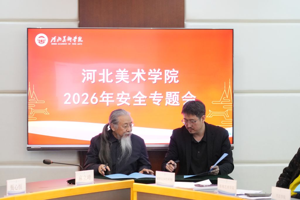 校长甄忠义代表学校与教务处、影视艺术学院等部门签订2026年安全工作责任书。