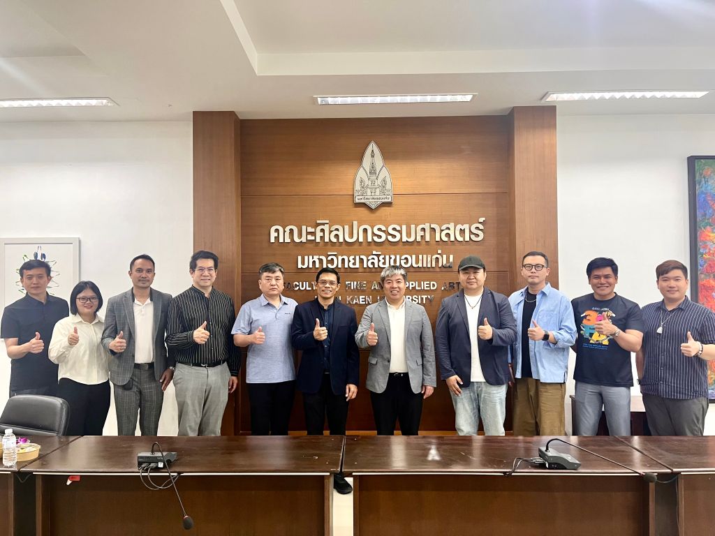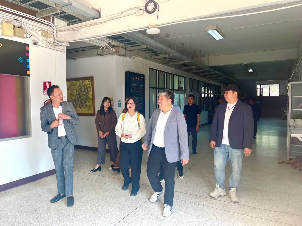 孔敬大学美术与应用艺术学院在东南亚地区享有盛誉,尤其在地域文化研究、传统工艺现代设计、艺术与社区发展等领域成果斐然。院长Assoc. Prof. Dr. Burin Plengdeesakul,学术副院长 Assoc. Prof. Tharanat Hin-On ,创新副院长 Asst. Prof. Dr. Pachon Akapram,院长助理 Asst. Prof. Dr. Phat Khachaphakdi,文化艺术与设计教师王柯然(Dr.Keran Wang),国际事务官 Ms.Jenny,国际事务官 Ms. GookGook,中国留学生张朝阳热情接待了张建敏一行。双方举行了正式座谈,并参观了学院的教学工作室、材料实验室及学生作品展厅。