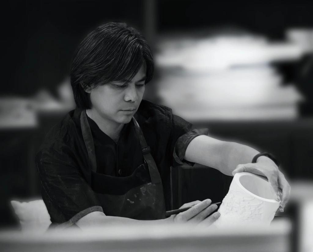 高老师的工作室成立于2015年,在被授予“中国工艺美术大师”称号之后,他将更多的时间花费在开辟新的艺术手法、研发新的雕刻材料和教学授业、培养雕刻新人的事业上来。高老师在成熟品牌大宋定窑的运营基础上,再次积极创新、勇于实践,创建了以自己的名字命名的“英坡瓷坊”,积极探索“定瓷+雕刻”这一新型艺术之路。