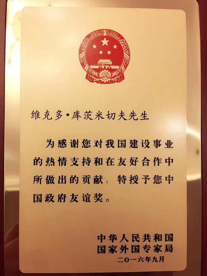 2015年5月,被国家主席习近平在莫斯科授予“中国-俄罗斯:友谊地久天长特别金奖”。
