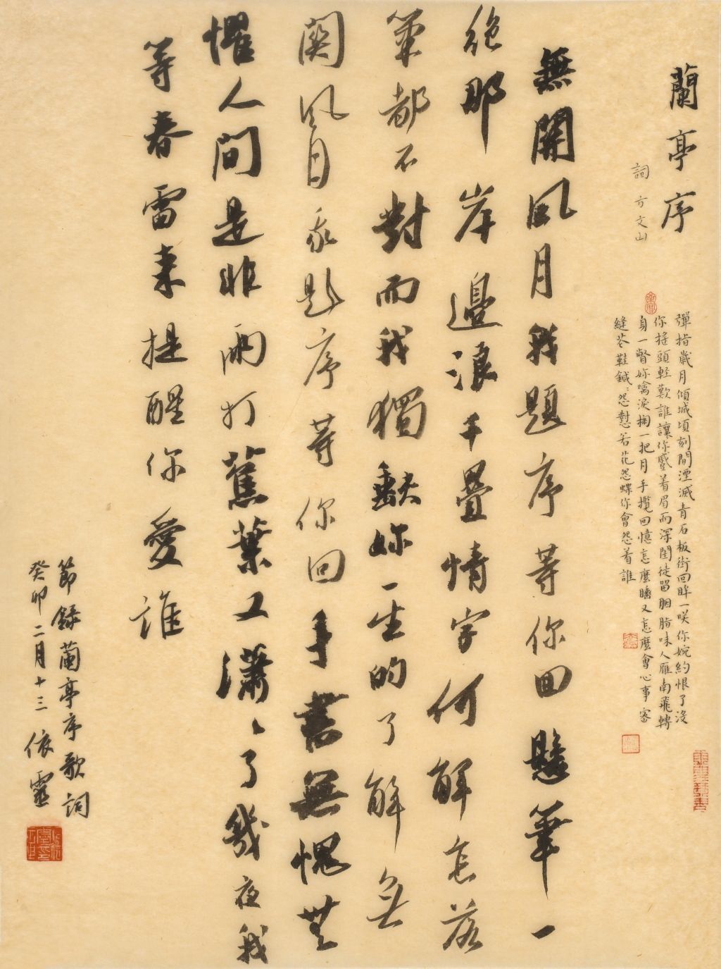 在多样书体间,石老师独钟小楷与小字行书。小楷工稳里藏着灵秀,能收纳她内心的宁静;小字行书洒脱中透着灵动,可承载她的情绪思绪。日常读宋词,碰到触动心灵的词句,她就用小楷或小行书抄写,墨迹随情感起伏,仿佛将李清照的婉约与苏轼的豪放尽收笔端。这种"以书载情"的创作方式,让她的作品兼具技法厚度与情感温度。