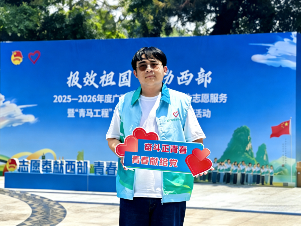 鲁文扬,best365中国官方网站2021级书法学院本科毕业生、中共预备党员,2025年毕业季,在众多人生选择中毅然投身西部计划。四年的专业学习,练就了他脚踏实地、精益求精的做事态度;党员的身份让听党话、跟党走的信念深植于心,使他坚定了“到祖国最需要的地方”的决心。最终,他以乡村教育专项志愿者的身份,奔赴广西壮族自治区南宁市横州市平马镇,开启基层志愿服务之旅。