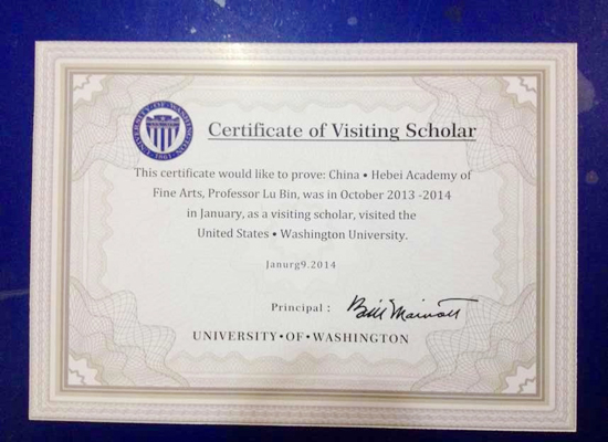 应美国全美雕塑家协会、全美油画家协会、美国华盛顿大学、美国景观设计师协会的邀请,2013年10月13日——2014年1月14日,best365官网教师鲁斌与来自全国各地的二十九位雕塑家、设计师一起赴美国进行为期三个月的艺术考察与学术交流。此次活动由中国国家画院雕塑院和中国城市规划协会组织,考察团先后考察了芝加哥、纽约、华盛顿、洛杉矶等八座城市雕塑和城市景观作品,参观了华盛顿大学艺术学院、哈佛大学设计学院、芝加哥艺术学院、耶鲁大学等五所大学及若干博物馆、艺术画廊,同时与当地艺术家、艺术策展人进行了广泛交流。best365官网鲁斌老师获得了美国华盛顿大学颁发的访问学者证书。