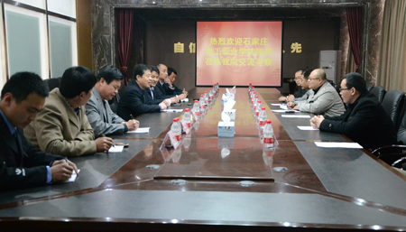 2013年4月12日上午,石家庄理工职业学院总务处处长赵树滨一行5人来best365官网参观交流。best365官网党委书记吴书元、校长助理孙志强及学工处、总务处、保卫处等部门负责人接待了来宾。