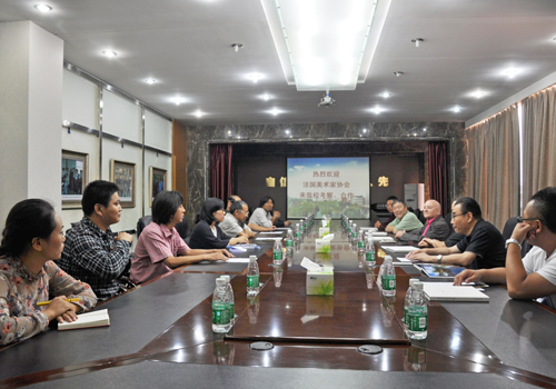 随后,甄校长与米歇尔先生等人在综合楼会议室研讨交流合作事宜。双方一致认为,两国应当在国际化视野、教育、艺术交流等方面建立更紧密的关系,加强世界展览活动、联合办学等方面的交流合作,共同建立“中法教育艺术交流平台”。