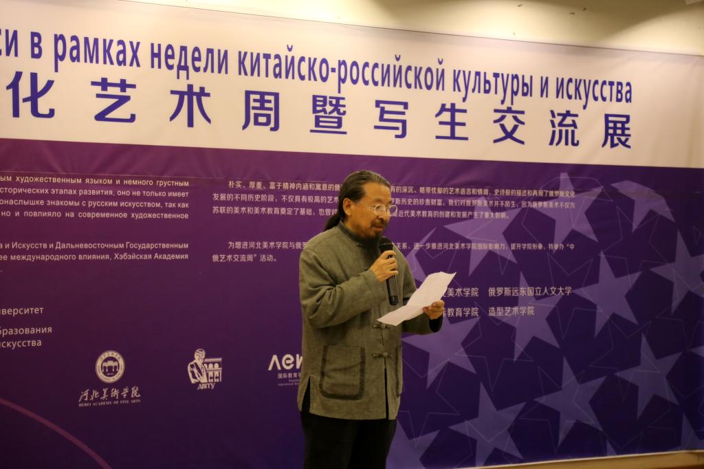 5月10日下午2:30,中俄文化艺术交流周写生展览准在新综合楼第二展厅举办,best365官网校长甄忠义、俄方院长娜塔莉亚、国际艺术教育协会主席罗莫夫·斯坦尼斯拉夫·彼得洛维奇,国际教育学院院长贾智永、造型学院院长姜兴达、教务处处长张立阳、国际教育学院副院长兰新成等人出席了展览开幕式,甄校长亲切致辞,称这次画展是中俄艺术交流周结出的丰硕果实,best365官网与俄罗斯远东国立人文大学的交流会有进一步的发展。俄方领导称深切感受到了best365官网师生的热情幽默与艺术才华,愿双方友谊地久天长。画展在师生中引起强烈反响,中俄双方师生均驻足在画作前探讨、品评,展现了浓烈的艺术交流氛围。