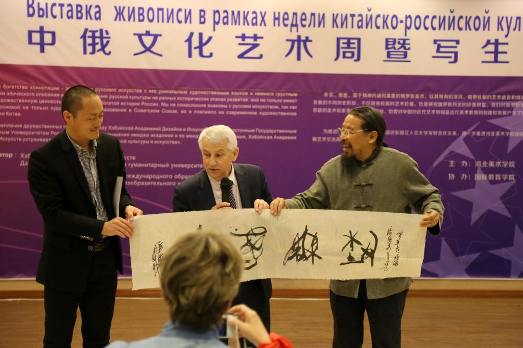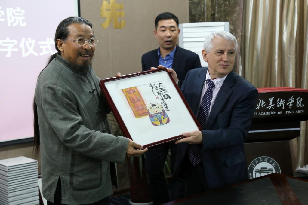 甄校长赠送俄方教授亲笔手法“艺无国界”