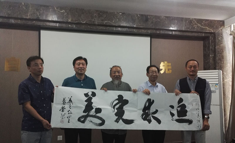 陪同考察的领导还有临沂大学美术学院教授、设计系主任蒋永茂,临沂市规划设计院院长程建民,临沂市直机关书法家协会主席李尊营等。